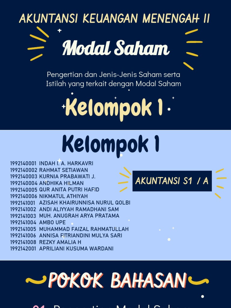 perusahaan Penanaman Modal yang diambil alih adalah ... Penanam Modal asing menjual kelebihan saham yang ... Penjualan Sepeda Motor (agen/ distributor).68 pages 24 Perusahaan Yang Modalnya Diperoleh Dari Penjualan Saham Disebut. Roe dihitung dari penghasilan income perusahaan terhadap modal yang diinvestasikan oleh para pemilik perusahaan pemegang saham biasa dan pemegang saham preferen. Yayasan adalah suatu badan usaha tetapi tidak merupakan perusahaan karena tidak mencari keuntungan. Perseroan terbatas (Naamloze Venootschap) atau biasa disebut dengan PT, adalah badan usaha yang modalnya terdiri dari saham-saham, yang pemiliknya memiliki bagian sebanyak saham yang dimiilkinya. Karena modalnya berupa saham-saham yang dapat diperjualbelikan, maka kepemilikan dapat berganti-ganti tanpa adanya pembubaran perusahaan. Ilustrasi Perusahaan yang Modalnya Diperoleh dari Penjualan Saham Foto: Pexels. Keuntungan yang diperoleh investor dengan membeli atau memiliki saham antara lain. 1. Dividen. Dividen merupakan pembagian keuntungan yang diberikan perusahaan dan berasal dari keuntungan yang dihasilkan perusahaan.