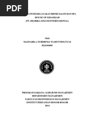Kata kunci: studi kelayakan bisnis , capital budgeting. ABSTRACT Economic conditions in developing countries such as Indonesia, makes people's livelihood unstable, it forcing people to be more creative both in the open field. Before opening a business analyzed on the feasibility of the business in the future is needed . ... Sebagai negara beriklim tropis, Indonesia sangat dipengaruhi oleh sinar matahari. Sinar matahari mampu memberikan keuntungan bagi kehidupan manusia, seperti mencegah dan mengobati gangguan pada tulang, serta sebagai aktifator provitamin D. Selain itu, Indonesia memiliki curah hujan yang cukup tinggi, sehingga membuat pertanian serta perkebunan di Indonesia tumbuh subur dan memiliki beragam ... Makalah Studi Kelayakan Bisnis more. by Lilik Chusnul. Untuk memenuhi tugas mata kuliah Studi Kelayakan Bisnis Dagang Syariah. Publication Date: 2021 Publication Name: Lilik Chusnul Qomariyah. Research Interests: MAKALAH and Studi Kelayakan Bisnis .