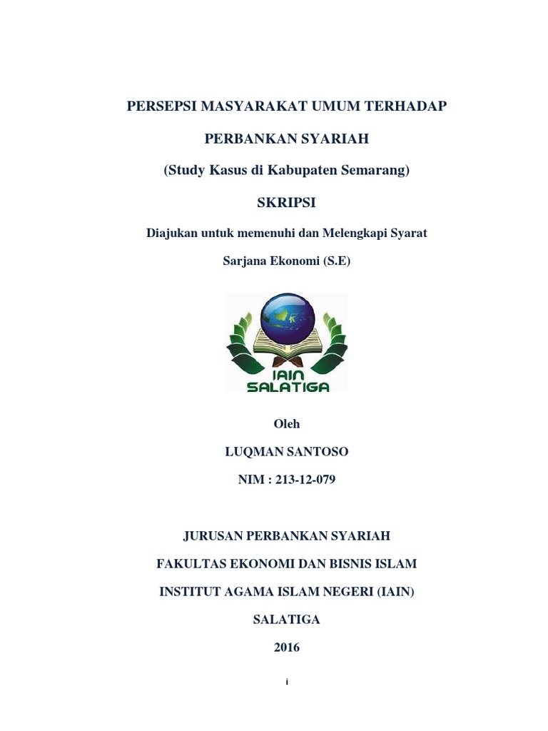 Penulisan skripsi ini adalah sebagai salah satu bagian dalam persyaratan ... Persepsi Dosen Syariah dan Ekonomi Islam Stain Jurai Siwo Metro Terhadap Perbankan Syariah dan Implikasinya, ... dilakukan bank syariah terhadap masyarakat masih sangat rendah sehingga ada