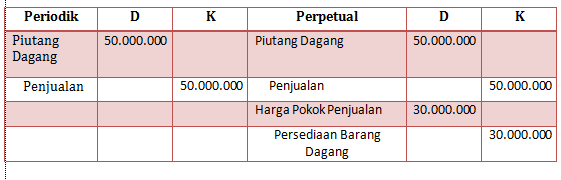 Nah, untuk lebih jelasnya lagi, kamu bisa melihat ilustrasi contoh di bawah ini. Pada Tanggal 20 Desember 2020, PT Maju Terus menjual barang seharga Rp4.000.000. Untuk transaksi penjualannya bisa dicatat seperti ini: (Debet) Kas = Rp4.000.000 (Kredit) Penjualan = Rp4.000.000