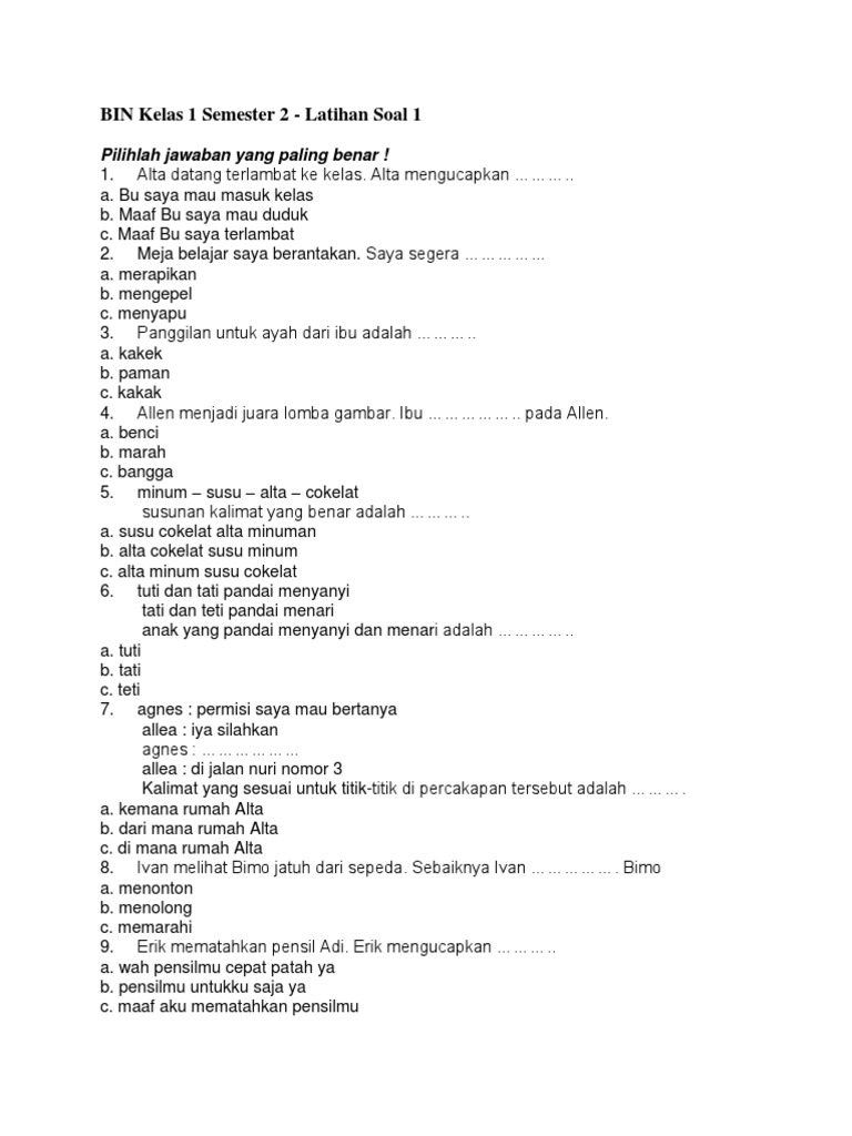 All classifieds - Veux-Veux-Pas, free classified ads Website. Come and visit our site, already thousands of classified ads await you ... What are you waiting for? It's easy to use, no lengthy sign-ups, and 100% free! If you have many products or ads, create your own online store (e-commerce shop) and conveniently group all your classified ads in your shop! Webmasters, … Bank Soal Ph Pts Pas Kelas 2 Semester 1 Lengkap Harapan kami semoga soal ulangan harian kelas 2 semester 1 diatas dapat bermanfaat untuk dunia pendidikan di indonesia secara lebih luas. Bank soal kelas 2 sd semester 1. Contoh soal soal di dalamnya. Untuk melakukan pengunduhan download bapak dan ibu cukup klik salah satu link diatas. Cerita Kelas : Tiga Mahasiswa 2 Mei Setelah satu tahun mengadakan kuliah daring/online, akhirnya semester ini tiga sekolah/universitas tempatku mengajar mengadakan kuliah tatap muka. Karena sudah lama tidak pergi ke kampus, satu hari terasa sangat melelahkan. Apalagi ada satu universitas yang jaraknya HANYA 60 km dari rumah dan BANK SOAL SD KELAS 1 Bank Soal adalah program untuk melatih santri-santriwati SDIT RR dari mulai kelas 1, kelas 2, kelas 3, kelas 4, kelas 5 dan kelas 6 dalam mengerjakan soal-soal latihan pilihan ganda atau yang lainnya.