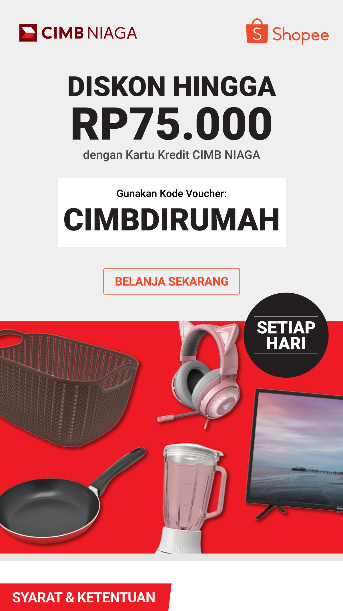 Promo kartu kredit niaga. Promo Cashback Kartu Kredit CIMB Niaga JCB Precious ... Sekarang, mari kita kembali ke topik utama yakni promo cashback kartu kredit CIMB Niaga JCB Precious. Promo ini tengah berlangsung, terhitung dari 1 Oktober lalu hingg 31 Oktober 2020 mendatang. Adapun promo yang ditawarkan adalah bonus cashback senilai Rp500 ribu, dengan apply kartu kredit CIMB Niaga JCB Precious (utama). Promo Kartu CIMB Niaga Jangan Lewatkan EMAX Special Promo, Dapatkan penawaran Save up to IDR 2.572.000 + cicilan 0% hingga 12 bulan dengan kartu kredit CIMB Niaga mulai tanggal 20 Juni - 31 Juli 2013. Berikut ini beberapa produk dan promo yang ditawarkan : Mac 21.5″ Starts From IDR 1.208.250* x 12 Months. Cara Pengajuan Kartu Kredit CIMB Niaga Terlengkap ... Promo Kartu Kredit CIMB Niaga dari Cashbac Klik Disini Cashbac bekerjasama dengan kartu kredit CIMB Niaga memberikan kamu bonus points hingga 50%! klik gambar di atas ya. Cashbac dapat digunakan di ratusan merchant dan ribuan outlet favorit kamu, segera pakai kartu kredit CIMB Niaga kamu di aplikasi Cashbac untuk dapat menikmati rewardsnya. Promo CIMB | Diskon hingga 48% | Maret 2022 | DiskonAja Penggiat traveling juga tidak boleh melewatkan promo terkini dari kartu kredit CIMB Niaga, nih. Misalnya saja, kamu bisa membeli tiket pesawat menggunakan kartu kredit CIMB Niaga di Cathay Pacific Travel Fair untuk mendapatkan cashback hingga 1,75 juta rupiah, cicilan 0% selama 12 bulan, dan diskon hingga 100% dengan menukar poin Xtra.