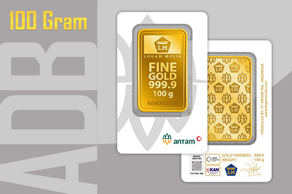 A-LM5-100 - Emas Logam Mulia ANTAM 100 gram RED MARK Emas Logam Mulia ANTAM 100 gram RED MARK. Emas Logam Mulia produksi PT. ANEKA TAMBANG berukuran 100 gram. Kadar Emas : 24 K. Ukuran : 100 gram. Bentuk : persegi panjang dengan ukiran logo "LM" dan tulisan FINE GOLD 999,9 100 g. Emas Murni 24 K berukuran 100 gram dengan kemasan ANTAM terbaru. Cek keaslian emas di apps CertiEye