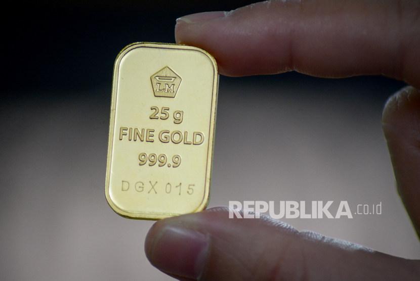 Warga Surabaya Gugat Antam Bayar Senilai 1,1 Ton Emas Warga Surabaya Gugat Antam Bayar Senilai 1,1 Ton Emas. Seorang pegawai menunjukkan kepingan emas di sebuah toko perhiasan di Kota Pekanbaru, Riau, Selasa (28/7/2020). Harga emas PT Aneka Tambang (Persero) Tbk pada Selasa (28/7/2020) berada di angka Rp 1.022.000 per gram, posisi tertinggi sepanjang masa emas Antam diperjualbelikan.