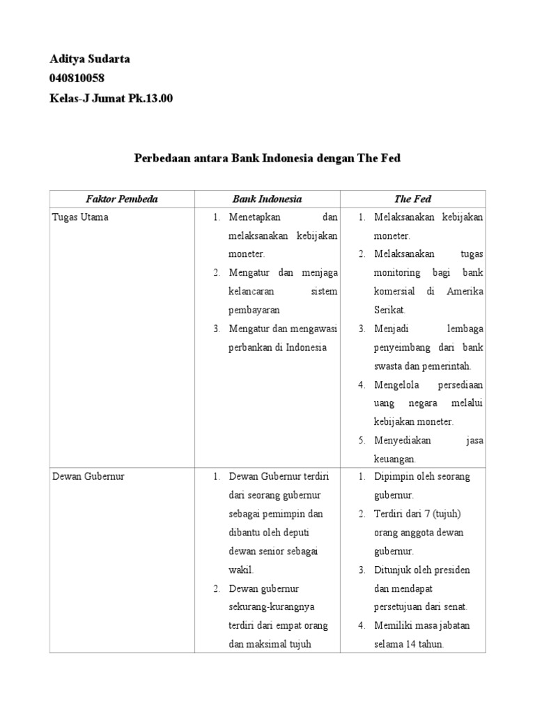 Perbedaan bank sentral dan bank umum. Mengenal Perbedaan Bank Umum dan BPR • KPR.ONLINE Bisa dilihat dari definisinya, perbedaan mendasar dari bank umum dan BPR adalah boleh atau tidaknya pemberian jasa dalam lalu lintas pembayaran. Jadi, bank umum bisa memberikan jasa layanan pembayaran seperti kliring dan valuta asing sementara BPR tidak bisa. Perbedaan Bank Sentral dan Bank Lainnya Wewenang bank sentral yang berkaitan dengan tugas menetapkan dan melaksanakan kebijakan moneter yaitu sebagai berikut: Menetapkan tingkat diskonto, cadangan minimum bank umum, dan mengatur kredit atau pembiayaan. Menetapkan sasaran moneter dengan memperhatikan sasaran... Perbedaan Bank Syariah dan Bank Umum (Konvensional) Perbedaan antara bank syariah dengan bank konvensional (umum) ternyata masih banyak masyarakat yang belum memahaminya secara rinci mengenai cara kerja, sistem yang diterapkan hingga berbagai macam fitur lainnya. Di dalam bank syariah banyak sekali menggunakan istilah serta... Bank Umum - Tugas dan Contoh [Plus Bedanya dengan BPR] Pengertian bank devisa adalah bank yang mendapat persetujuan atau ditunjuk Bank Sentral (dalam hal ini Bank Indonesia) untuk dapat melakukan kegiatan usaha bidang perbankan Perbedaan antara bank umum dan BPR. Sebelum membahas perbedaan, ketahui terlebih dahulu pengertian BPR.