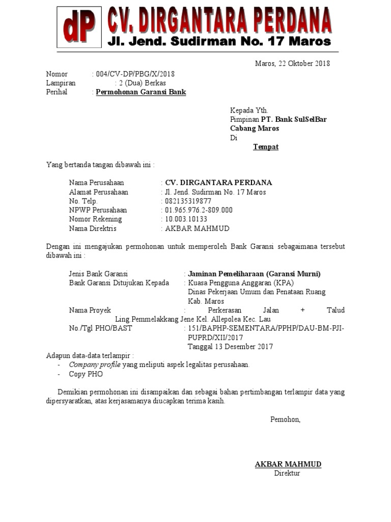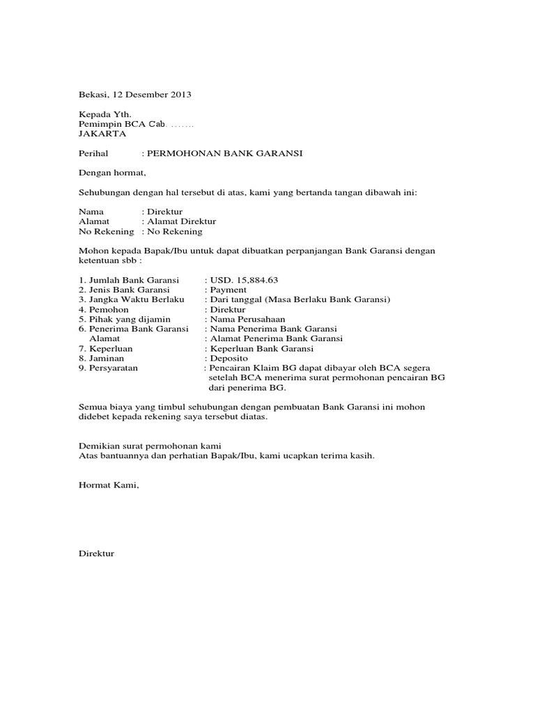 Bank Garansi: Pengertian, Manfaat, dan Jenis-Jenisnya ... Jenis bank garansi berdasarkan bentuknya. Penerimaan atau penerbitan jaminan dalam bentuk bank garansi untuk pemberian kredit, risk sharing, dan standby loan dalam rangka pelaksanaan proyek. Penerimaan rutin surat berharga seeperti pemberian jaminan bentuk penandatanganan kedua atau seterusnya atas wesel dan promes. 2. Jenis bank garansi ... √ [Lengkap] Pengertian Bank Garansi, Contoh, Jenis dan ... contoh bank garansi uang muka. Baca juga : Pengertian Jaminan atau Agunan Lengkap dengan Tujuannya Perbedaan FOB Shiping Point dan FOB Destination Pengertian Ekonomi Mikro dan Makro serta Perbedaannya Pengertian Teori Kebutuhan Hiearki Maslow Jenis-Jenis Bank Garansi. Setidaknya terdapat 10 jenis bank garasi, dan berikut ini adalah ke 10 bank garasi tersebut lengkap dengan penjelasannya : MENGENAL BANK GARANSI | mediator investor [JASA] Bank Garansi, Surety Bond dan Asuransi Umum-=Tentang Kami=-PT JAVIO ASYIK MANDIRI adalah sebuah Perusahaan Jasa Konsultan Asuransi yang berkedudukan di Jakarta dan bergerak pada pelayanan berbagai jenis asuransi baik Asuransi Umum (General Insurance) maupun Asuransi Jiwa (Life Assurance).