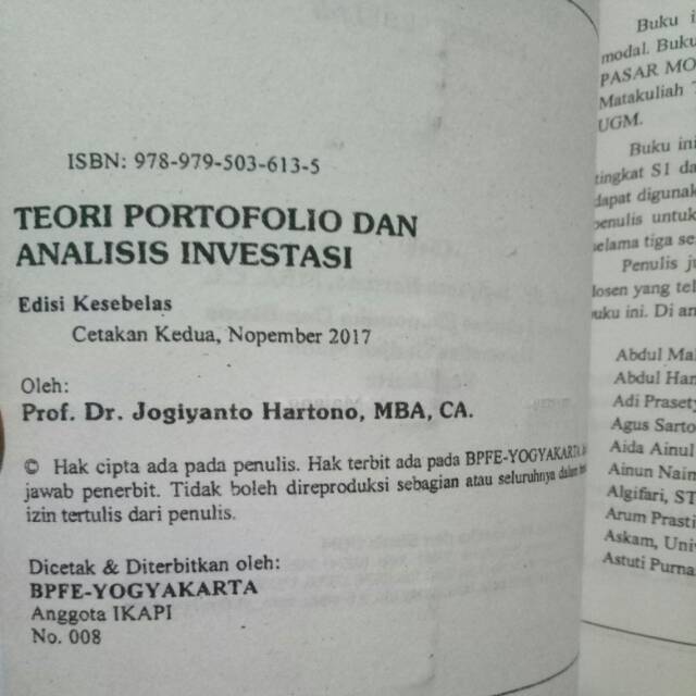 Buku Jogiyanto Teori Portofolio Dan Analisis Investasi ... Jika ada sedang mencari Buku Jogiyanto Teori Portofolio Dan Analisis Investasi. Inilah pembahasan selengkapnya mengenai buku jogiyanto teori portofolio dan analisis investasi. Admin blog Berbagai Buku 01 February 2019 juga mengumpulkan gambar-gambar lainnya terkait buku jogiyanto teori portofolio dan analisis investasi dibawah ini.
